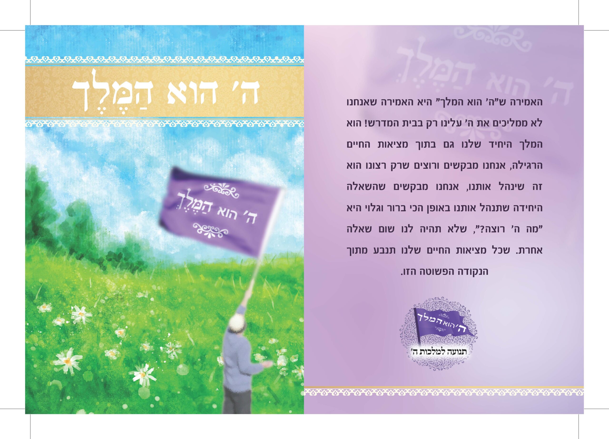 אנחנו מעוניינים שכל מי שירצה להפיץ את מלכות ה', יוכל לפנות לקבל את כל החומרים הרלוונטים, ולהשתמש בהם שימוש חופשי לפרסום מלכות ה'. לכן אנחנו מצרפים כאן את כל החומרים של התנועה באופן שמוכן להדפסה, מוזמנים להוריד ולהדפיס בעצמכם!